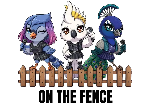 Chibi Punk Rock Bird Musicians on Fence - Cute Animal Band Graphic
