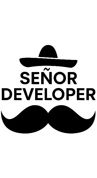 Stylized sombrero, mustache, and 'Señor Developer' text