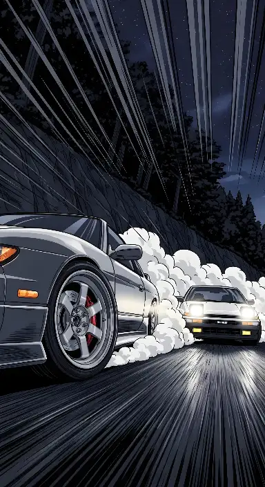 Anime Drifting Cars: Intense Night Race Artwork for Enthusiasts