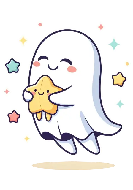 Kawaii Chibi Ghost Holding Star Graphic for Cute Aesthetics