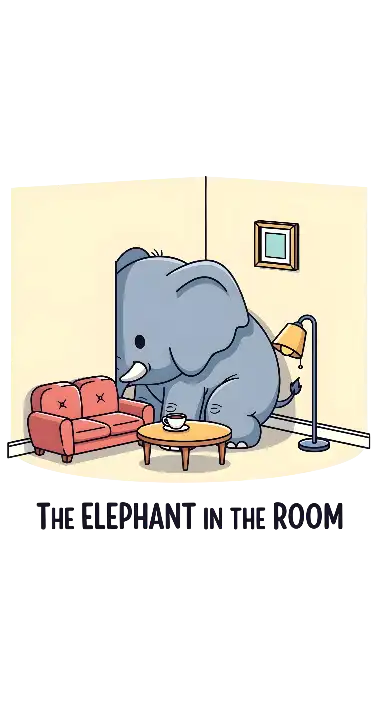 Humorous Cartoon Elephant in the Room Idiom Illustration