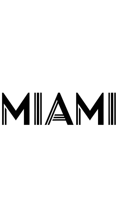 This minimalist modern geometric MIAMI text logo design features dark, layered typography and straight lines, perfect for creating sleek urban branding elements or apparel. It captures a sophisticated, urban vibe for fashion brands, nightlife, or modern design enthusiasts.
